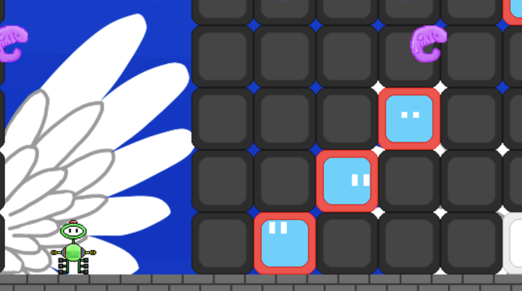 Play as a green robot that tries to find it's way home. Defend yourself from alien threats by shooting projectiles and duck and cover from their attacks! Do not let them fool you.